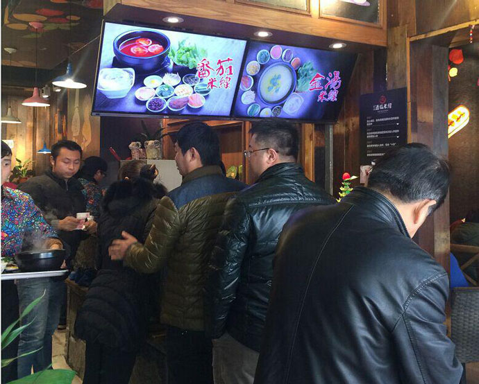 2014年底在杭城武林商圈新開了一家叫做“十秒到云南過橋米線”的特色小店,面積不大、工作人員不多,卻異常火爆,作為彌補市場空缺的新角色,十秒到過橋米線的高湯是用大骨、老母雞、云南宣威火腿經長時間熬煮而成,采集骨湯精華。其中湯底分為味重色濃香辣的麻辣湯底和清淡醇香的清湯底。米線及其它輔料均采用上等食材,米線口感滑潤有勁道,配以嚴格甄選的上等新鮮蔬菜、肉片等輔料。味香而不油膩、鮮美卻不燥舌——給消費者們純正的云南原味。除了味覺上的享受,店面的裝潢從視覺上也給消費者別具一格的體驗——民族壁畫、云南彩燈、古香古色的桌椅板凳、店小二的民族服飾,從細微之處無不契合云南民族風情,這在過橋米線市場中極其少見,可謂創新之舉,必將在2015年掀起一陣米線旋風。